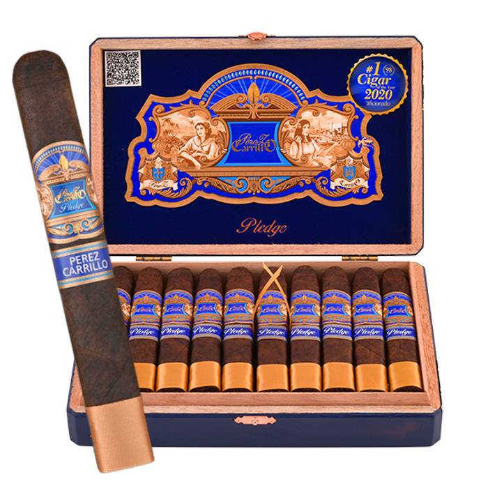The EP Carrillo Pledge line is a fuller bodied masterpiece made for indulgent palates and hearty appetites. The cigars are perfectly fermented, balanced and beautifully constructed. The unique USA Connecticut Habano maduro wrapper is spectacular and compliments the Ecuadorian binder and Nicaraguan fillers perfectly. In 2020 Cigar Aficionado magazine rated the Pledge Prequel a 98 and named it Cigar of the Year.