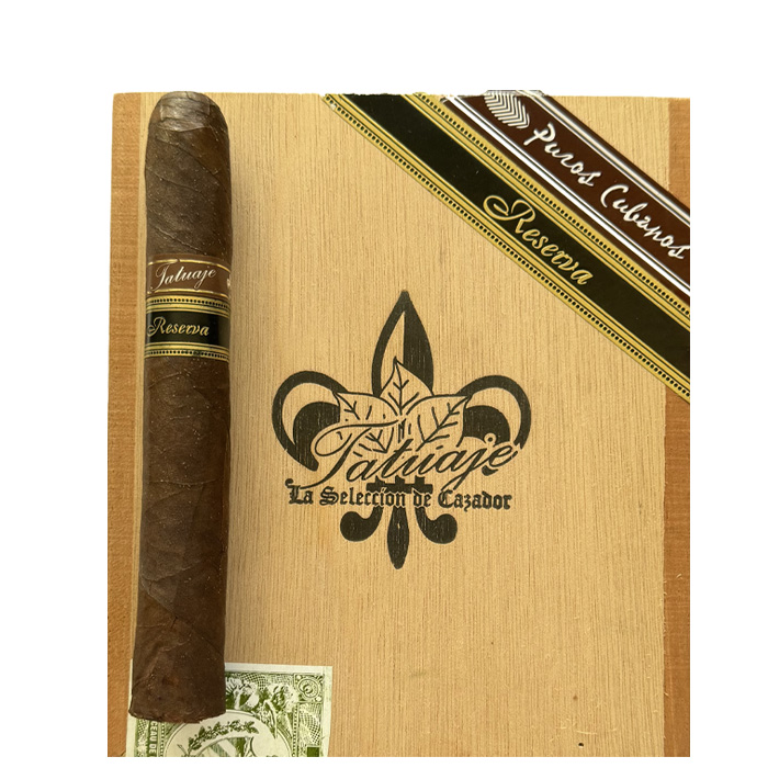 The Tatuaje La Seleccion De Cazador, also known as the "Brown Label" can be considered the fundamental Tatuaje cigar line. The Reserva line extensions use the most extraordinary filler, binder and wrapper leaves to yield more complexity and refined flavors.