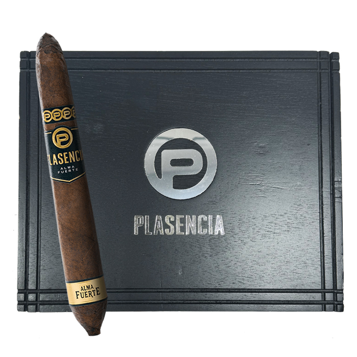 The Plasencia Alma Fuerte line translates to 'strong soul' and perfectly describes fuller bodied and strength flavor profiles crafted with sophistication and artistry. This orignal Alma Fuerte (black box and bands) line is fuller bodied, medium+ strength, with dark coffee and chocolate flavors. They are also very complex and represent the height of craftsmanship. These are Nicaraguan puros with components from all of Nicaragua's main growing regions: Esteli, Condega, Jalapa and Ometepe.