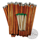 Wooden matches are preferable for cigar and pipe lighting because they will burn longer and broader than cardboard. With any match, it is crucial to let the sulfur (and other chemicals) burn away before taking the flame to the tobacco. Luxury matches (as shown below) can be found with extra long cedar shanks. Long matches are not only elegant, but very useful when lighting a cigar with a large ring gauge.